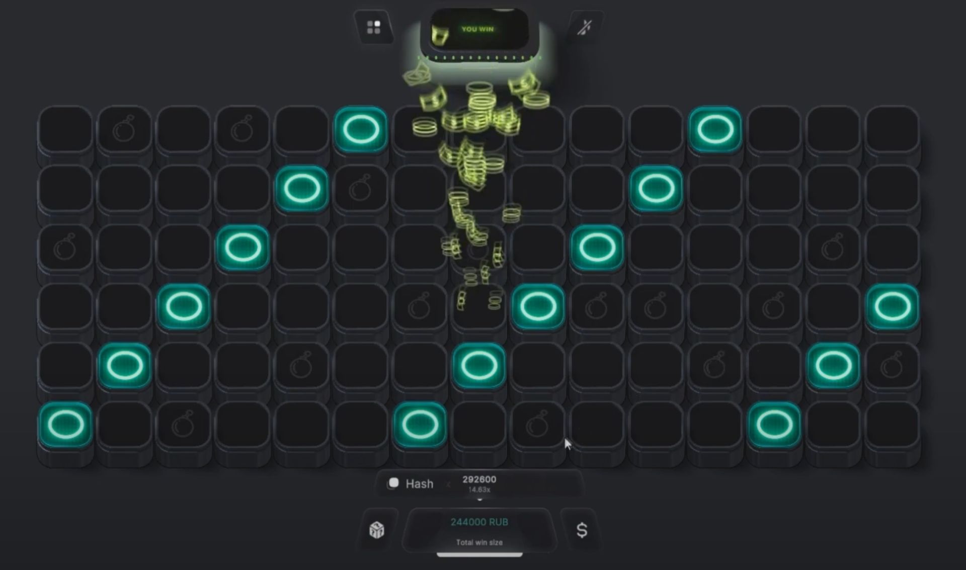 Выплата или проигрыш: Если выбранная ячейка не содержит мины, игрок получает выплату по определенному коэффициенту. В случае обнаружения мины, игрок теряет свою ставку и игра заканчивается.