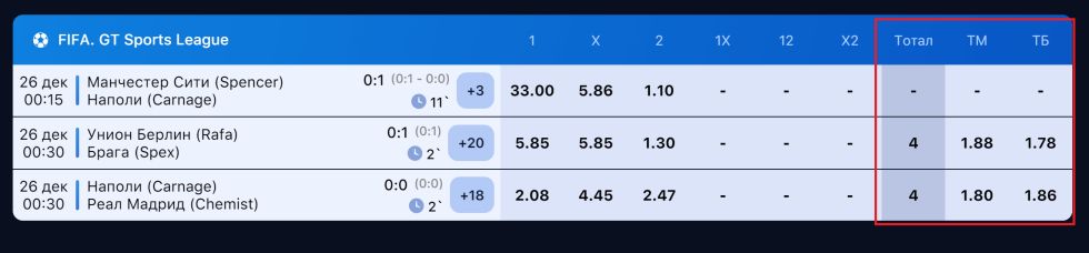 В букмекерских конторах обозначения ТБ и ТМ означают "Тотал Больше" и "Тотал Меньше". Например, ТБ 2.5 - это ставка на то, что в матче будет забито больше 2.5 голов, то есть минимум 3. А ТМ 2.5 - это ставка на то, что голов будет забито меньше 2.5, то есть максимум 2.