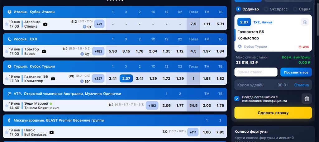 Коэффициенты в лайве изменяются по ходу игры, что привлекает многих игроков. В режиме live можно анализировать игру, реагируя на происходящее в реальном времени. Некоторые матчи в лайве на 1Win можно даже смотреть в режиме онлайн-трансляции прямо на странице с коэффициентами.