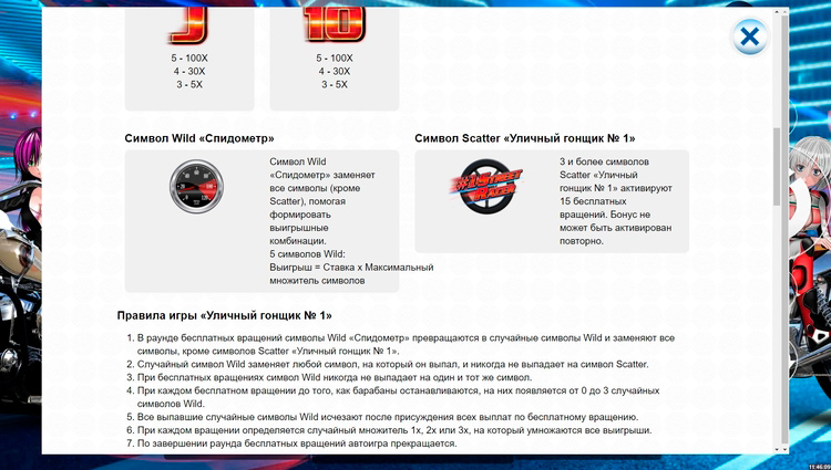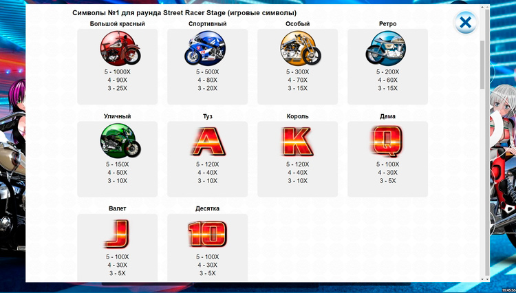 Таблица выплат #1 Street Racer