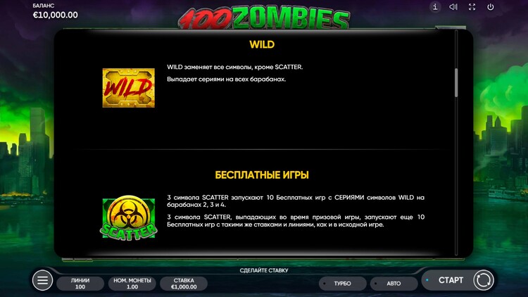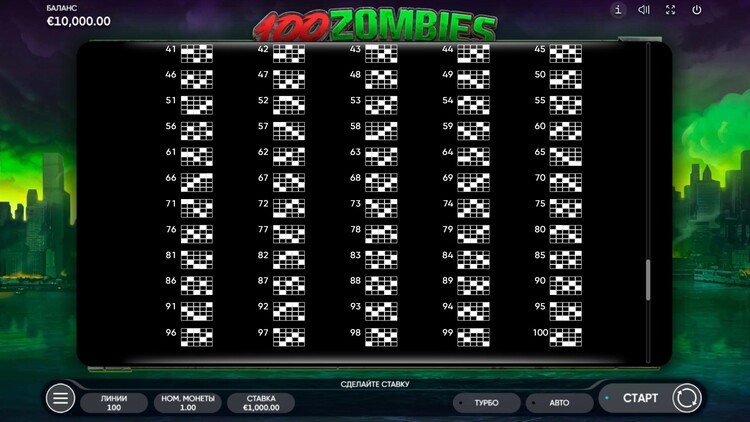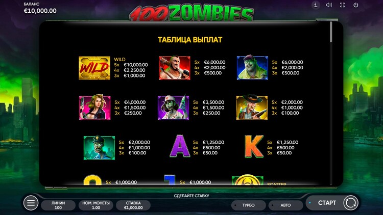 Таблица выплат 100 Zombies