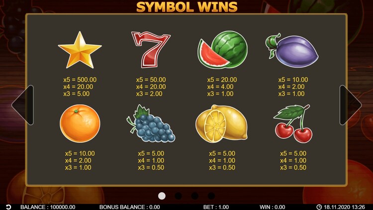 Таблица выплат 20 Hot Twist