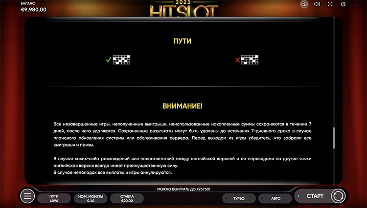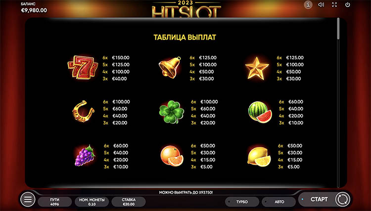 Таблица выплат 2023 Hit Slot