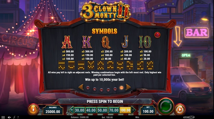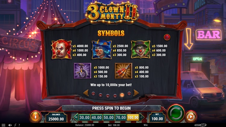Таблица выплат 3 Clown Monty 2