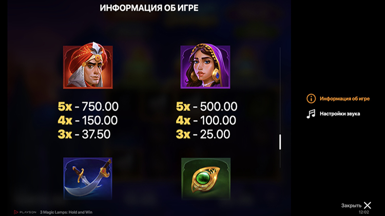 | Аладдин, Джинн (Wild) | 37,5 | 150 | 750 |