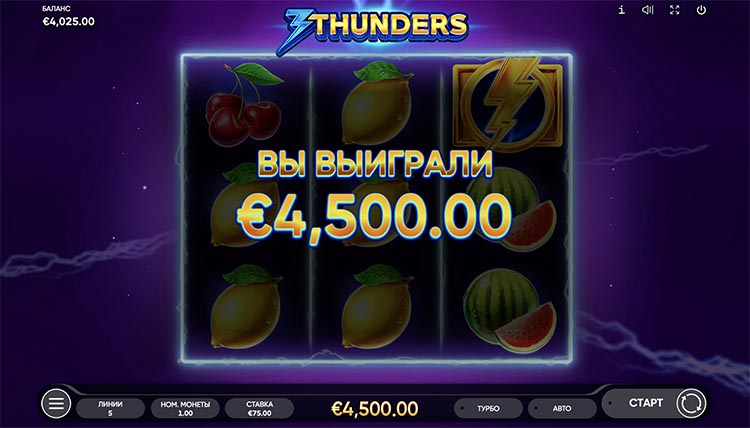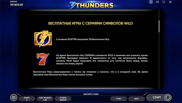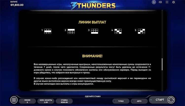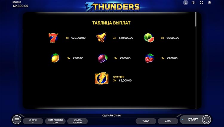 Таблица выплат 3 Thunders