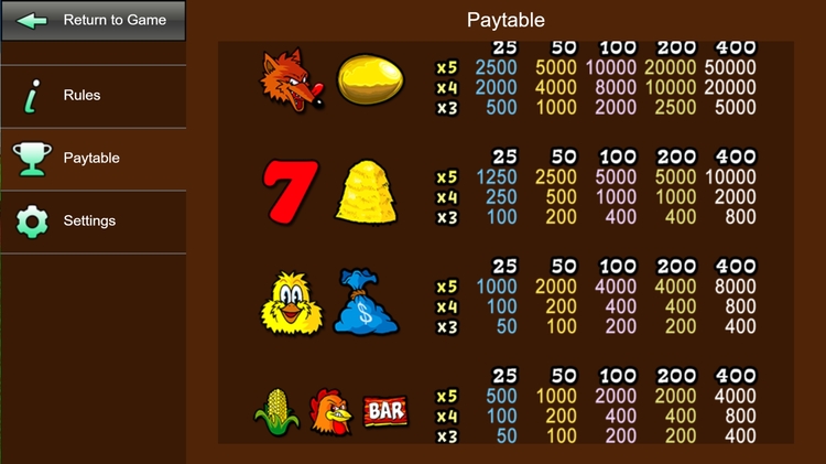 | Мешок с деньгами, Цыпленок | 50-400 | 100-800 | 1 000-8 000 |