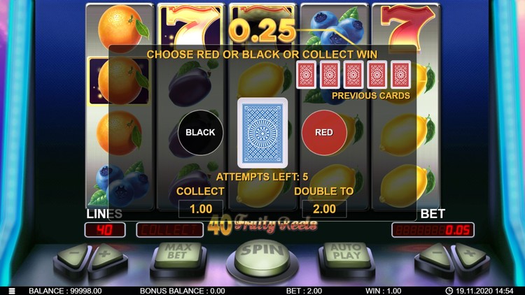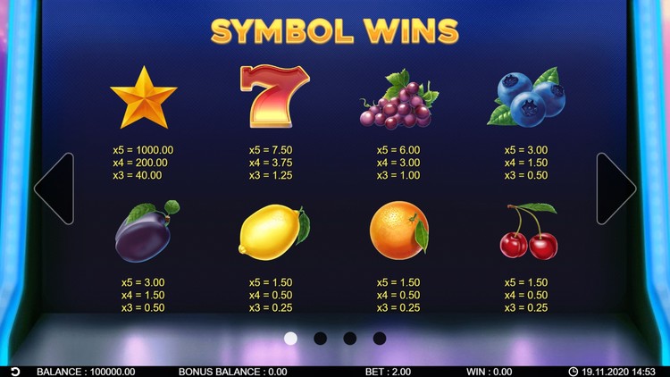 Таблица выплат 40 Fruity Reels