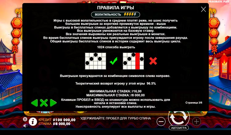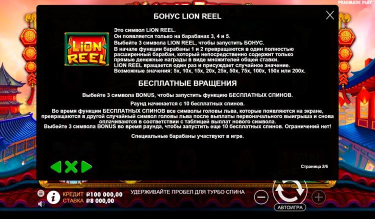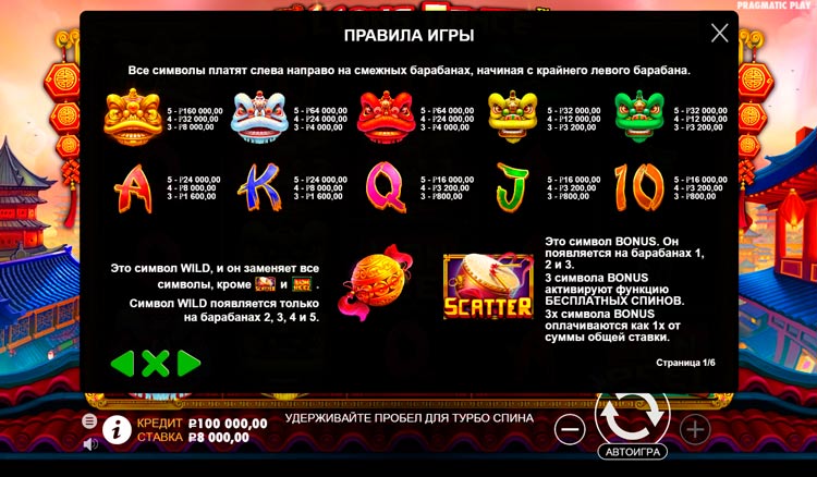 Таблица выплат 5 Lions Dance