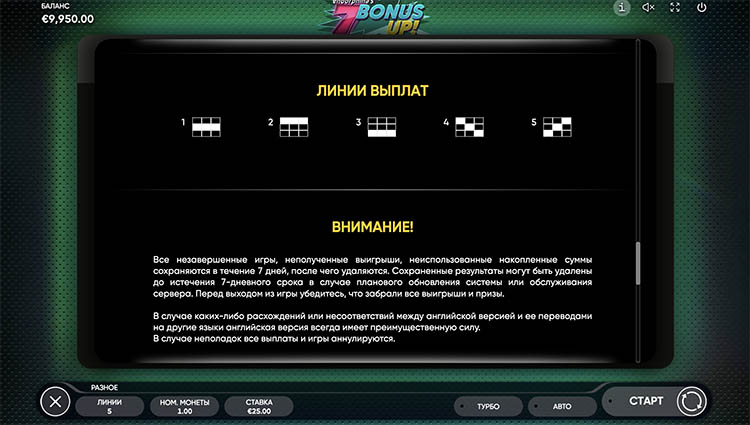 Таблица выплат 7 Bonus Up!