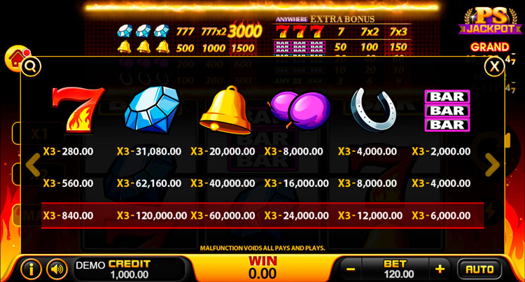 Таблица выплат 777