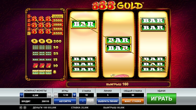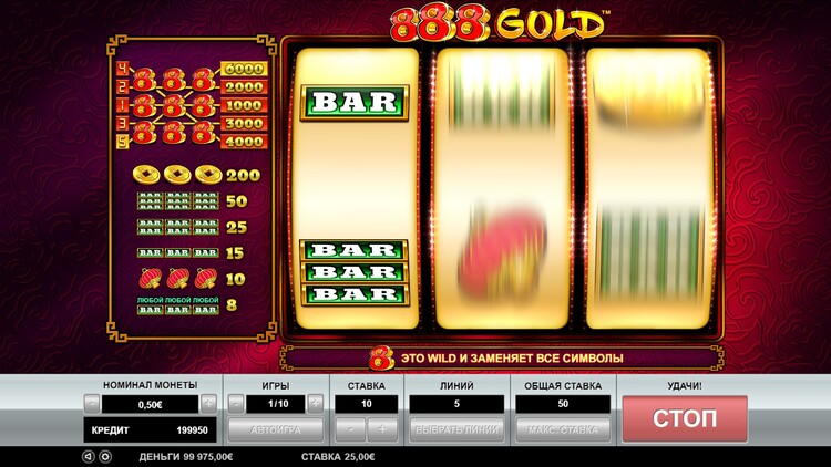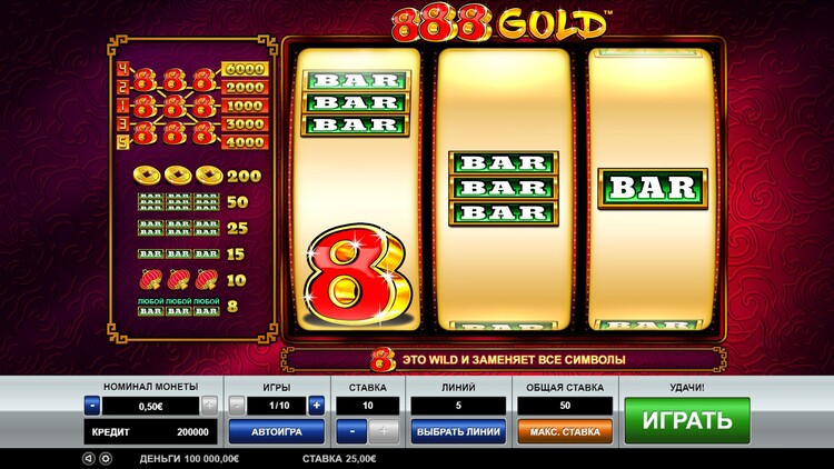 Таблица выплат 888 Gold