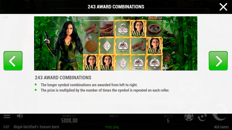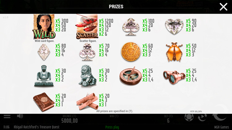 Таблица выплат Abigail Ratchford’s Treasure Quest