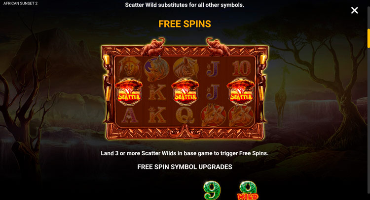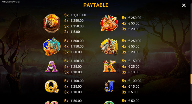 Таблица выплат African Sunset 2