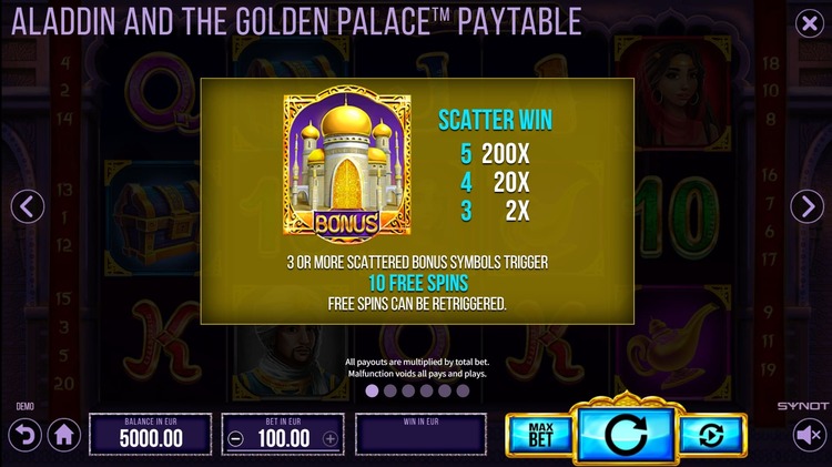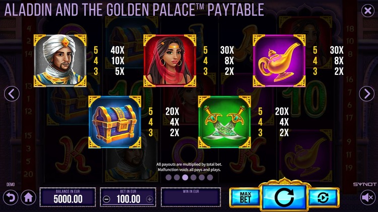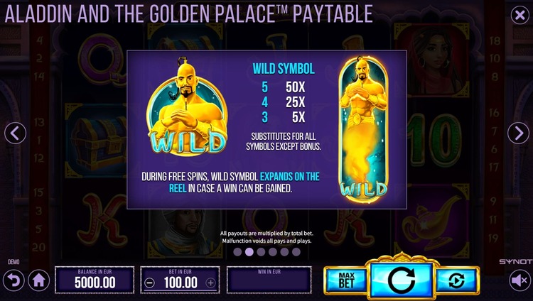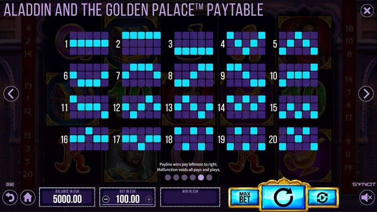 Таблица выплат Aladdin And The Golden Palace