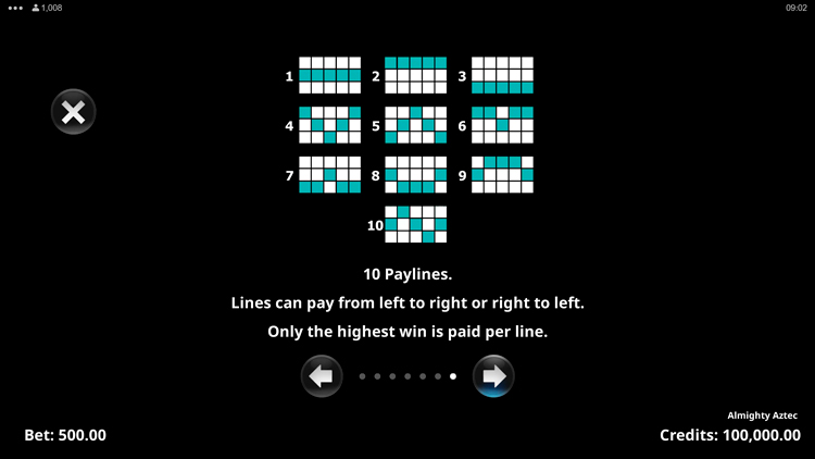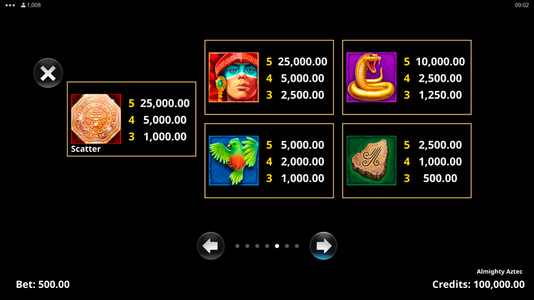 Таблица выплат Almighty Aztec