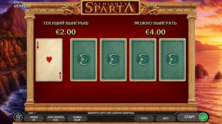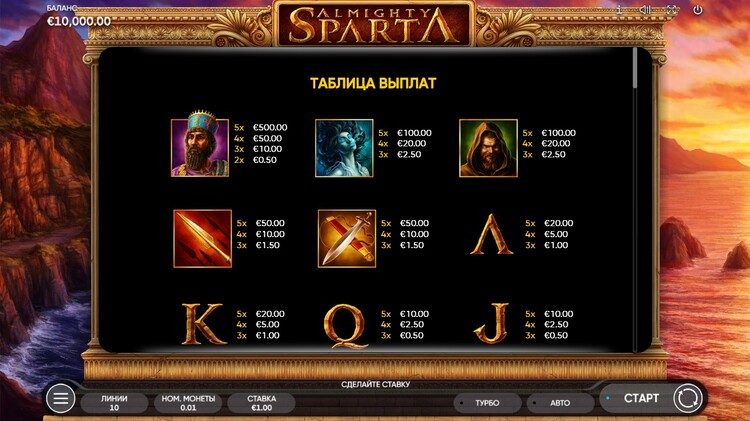 | Император Спарты | 0.5 | 10 | 50 | 500 |