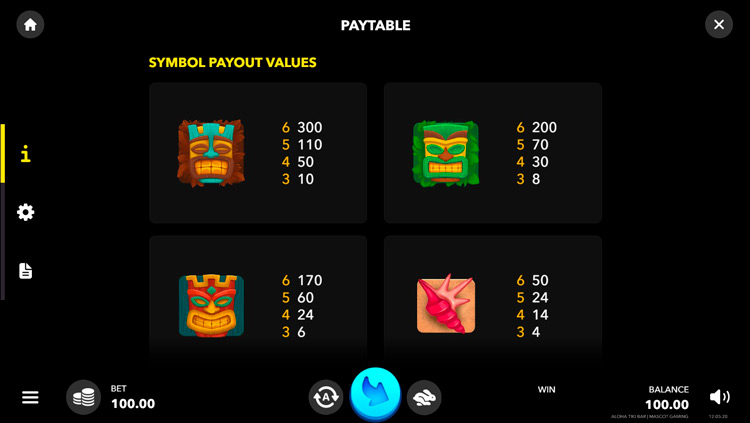 Таблица выплат Aloha Tiki Bar