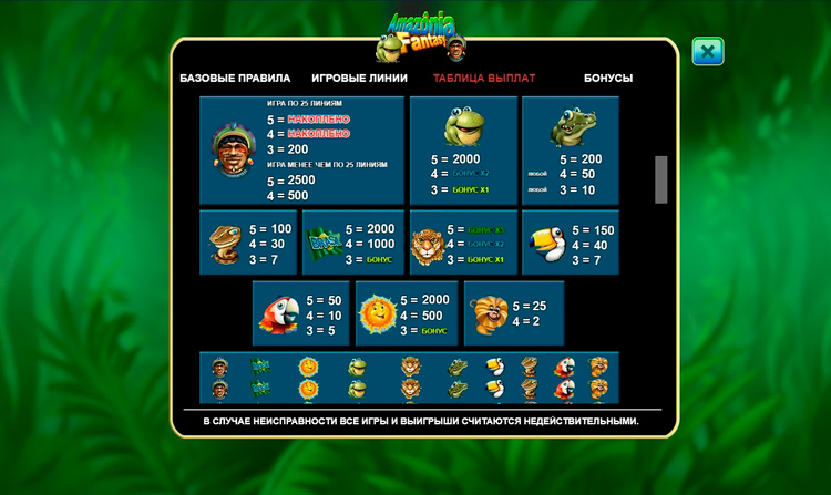 Таблица выплат Amazonia Fantasy