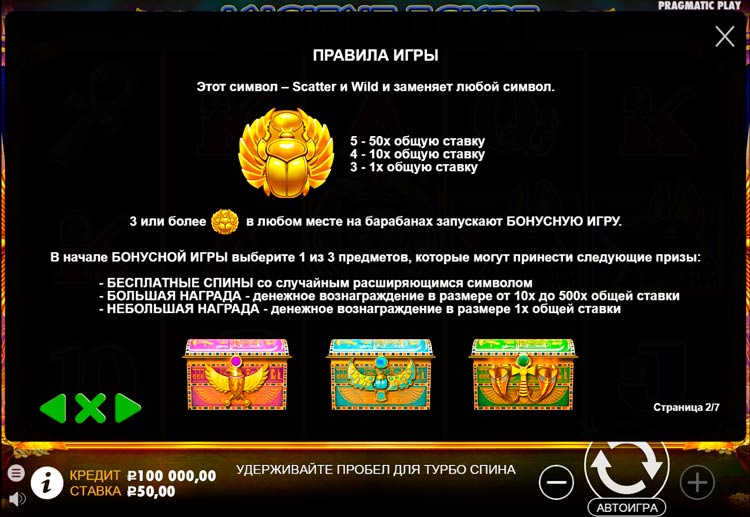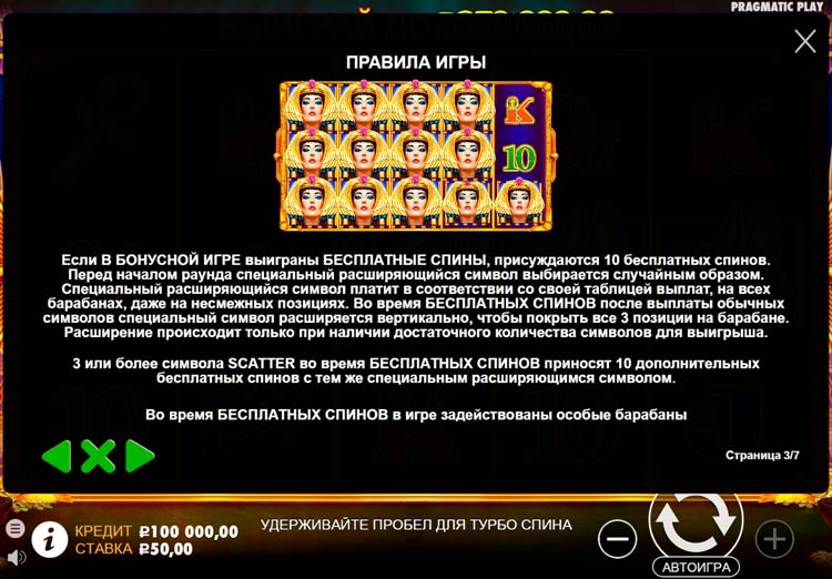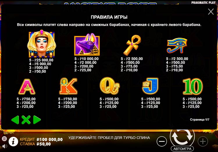 Таблица выплат Ancient Egypt