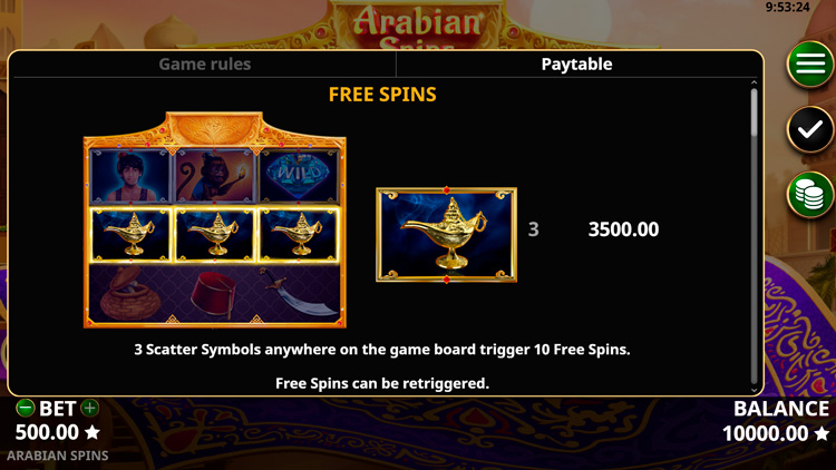 Таблица выплат Arabian Spins