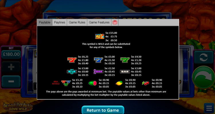 | Броненосец (Wild) | 0,5 | 3,75 | 15 |