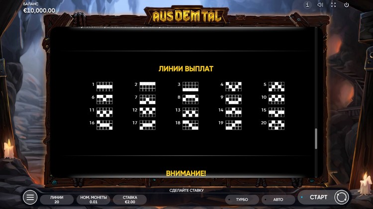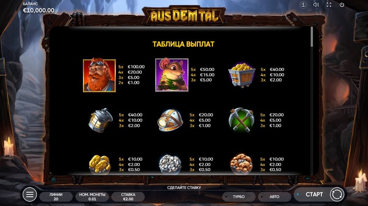 Таблица выплат Aus Dem Tal