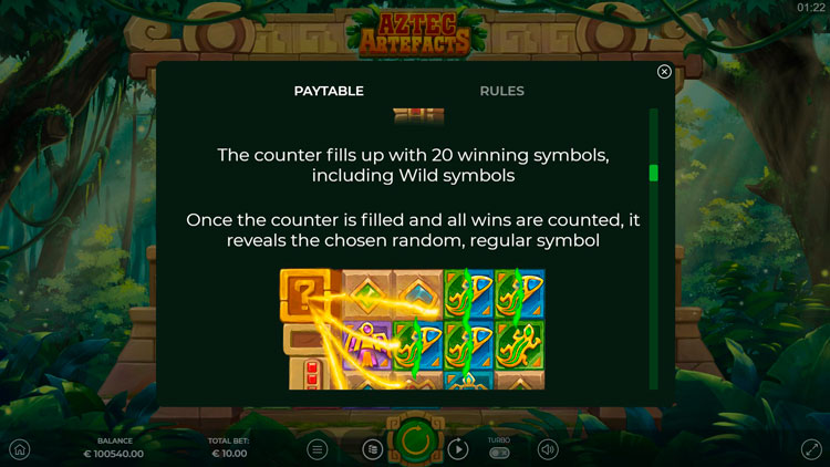 Таблица выплат Aztec Artefacts