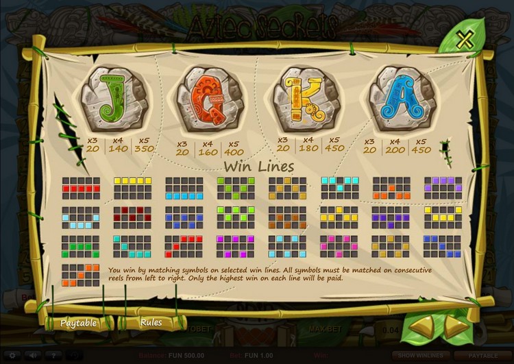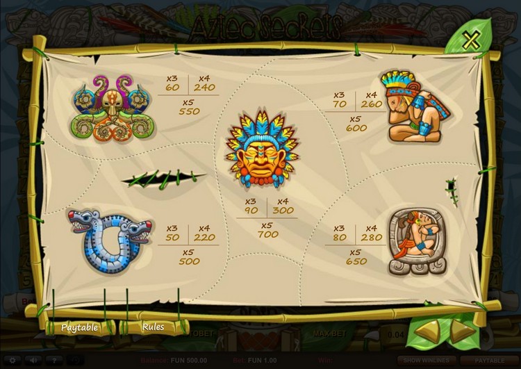 Таблица выплат Aztec Secrets