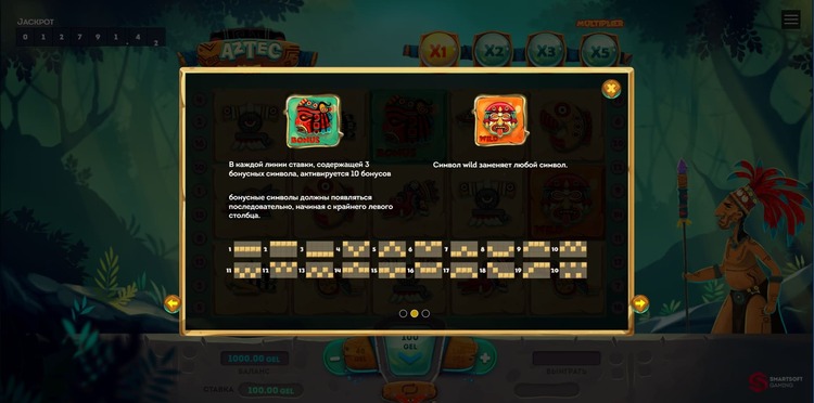 Таблица выплат Aztec Slot