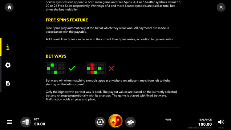 Таблица выплат Bamboo Bear