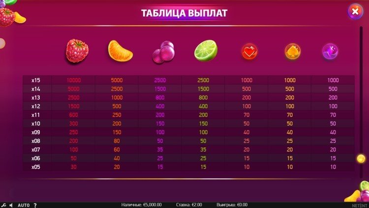 | Малина | 30 | 50 | 100 | 250 | 600 | 2500 | 5000 | 10 000 |