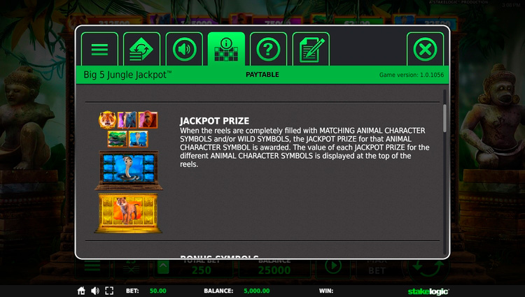 Таблица выплат Big 5 Jungle Jackpot