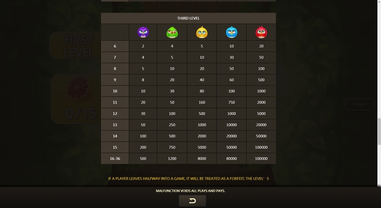 | Желтая птица | 5 | 10 | 40 | 80 | 500 | 1 000 | 5 000 |