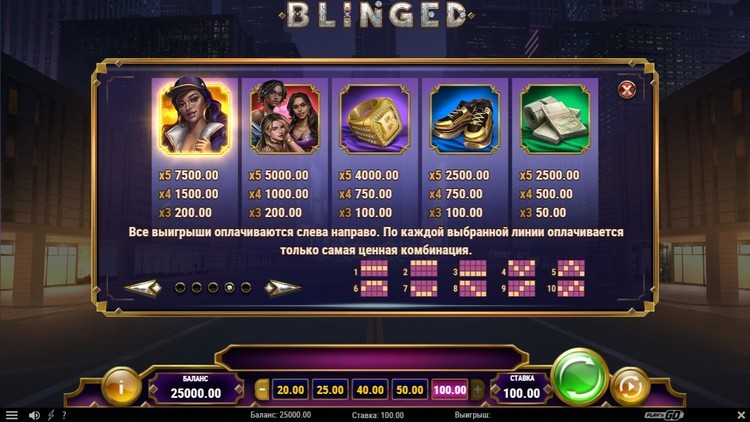 Таблица выплат Blinged