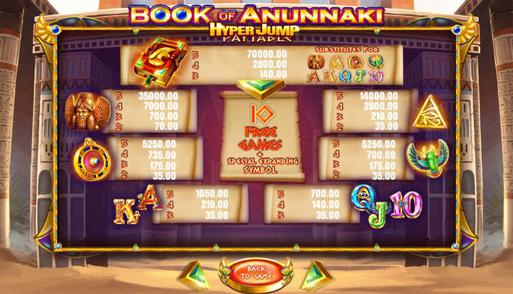 Таблица выплат Book of Anunnaki