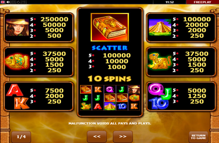 | 10, J, Q | - | 250 | 1250 | 500 |