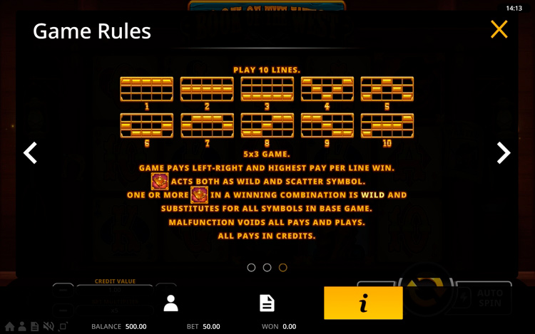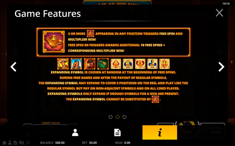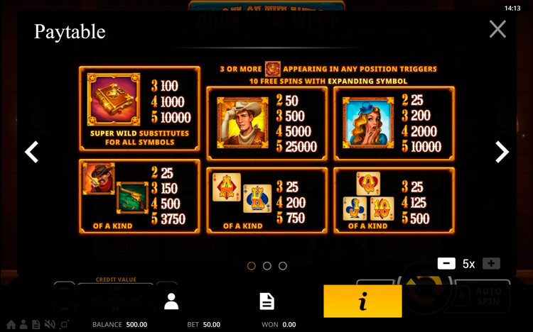 Таблица выплат Book Of The West