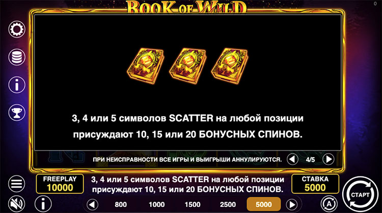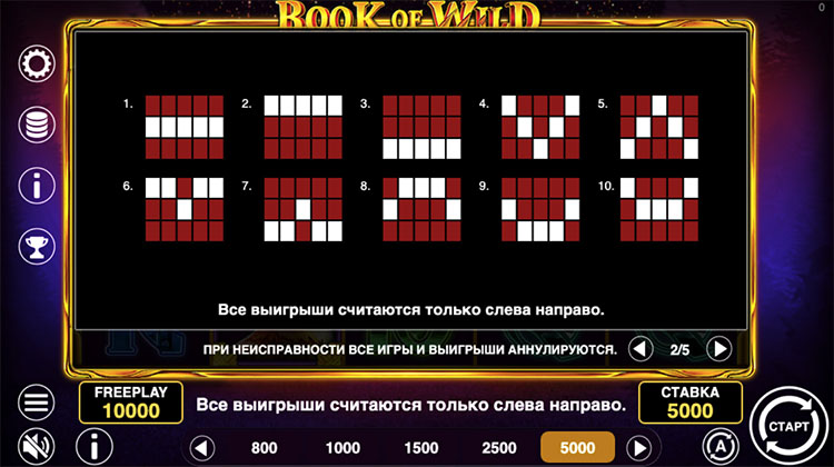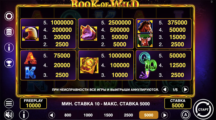 Таблица выплат Book of Wild