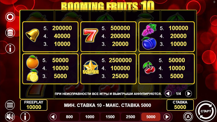 | Вишня, Лимон, Апельсин | 5000 | 10 000 | 50 000 |