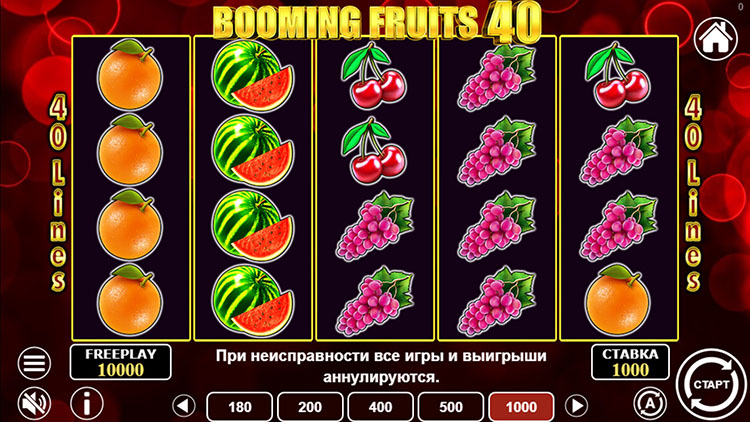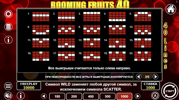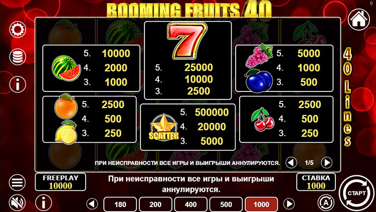 Таблица выплат Booming Fruits 40