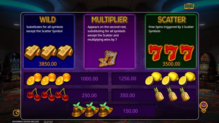 Таблица выплат Booming Seven Deluxe