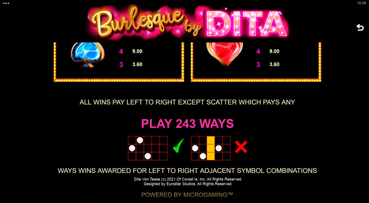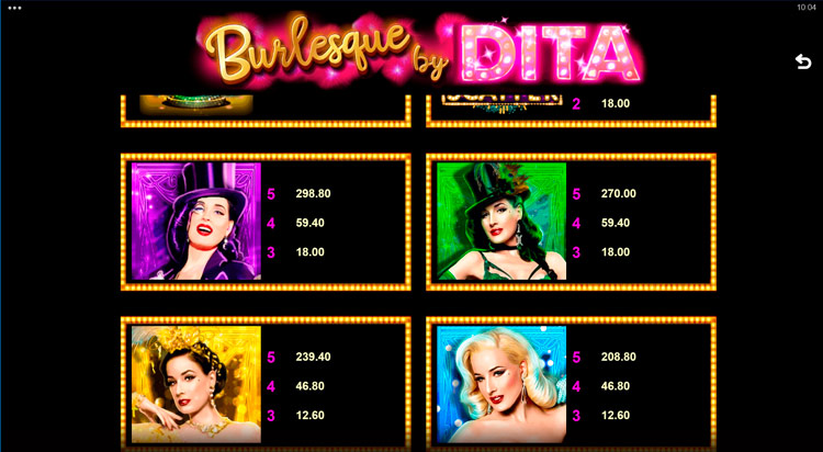 Таблица выплат Burlesque By Dita