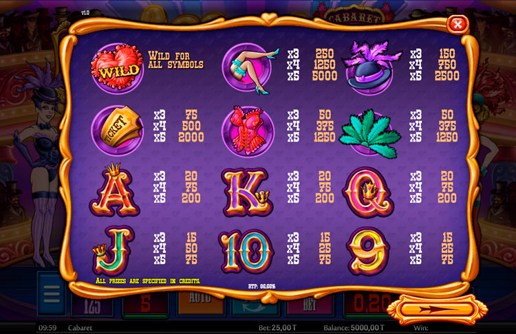Таблица выплат Cabaret