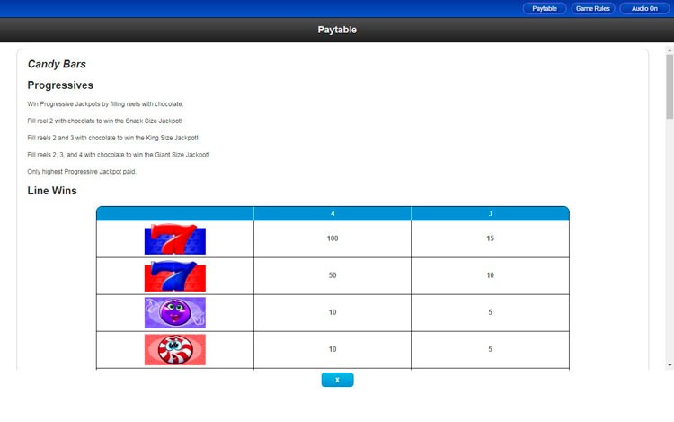 Таблица выплат Candy Bars