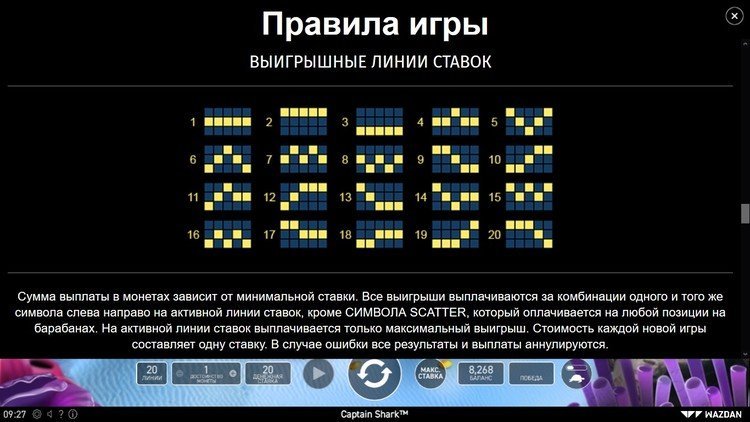 | Капитан акула (Wild) | 10 | 250 | 2 500 | 9 000 |