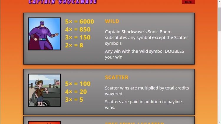 Таблица выплат Captain Shockwave