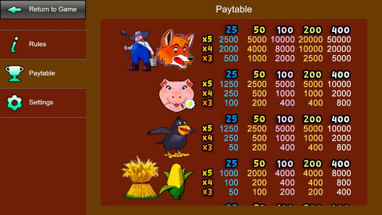 | Лис (Wild), Фермер | 500-5 000 | 2 000-20 000 | 2 500-50 000 |