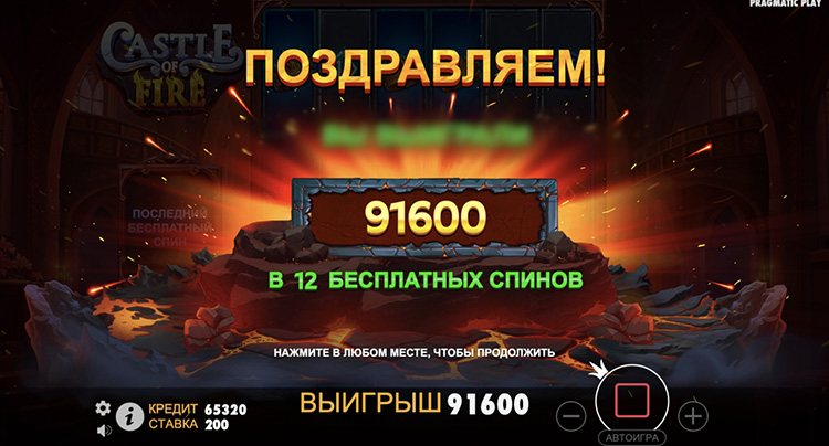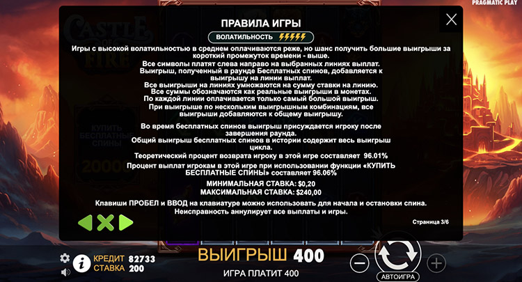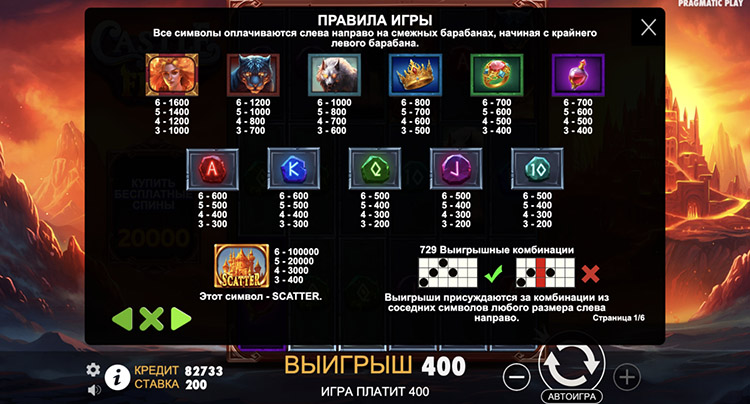 Таблица выплат Castle of Fire