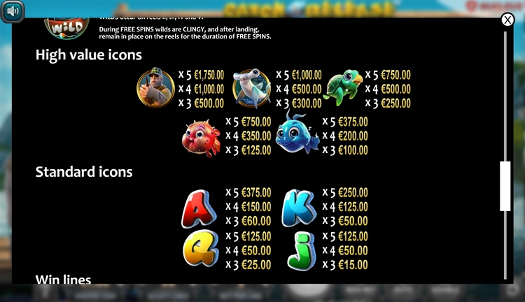 Таблица выплат Catch & Release